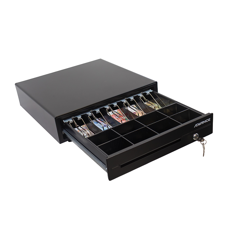 Caja para efectivo Advance ADV-6406, 5 ranuras, RJ11, Negro